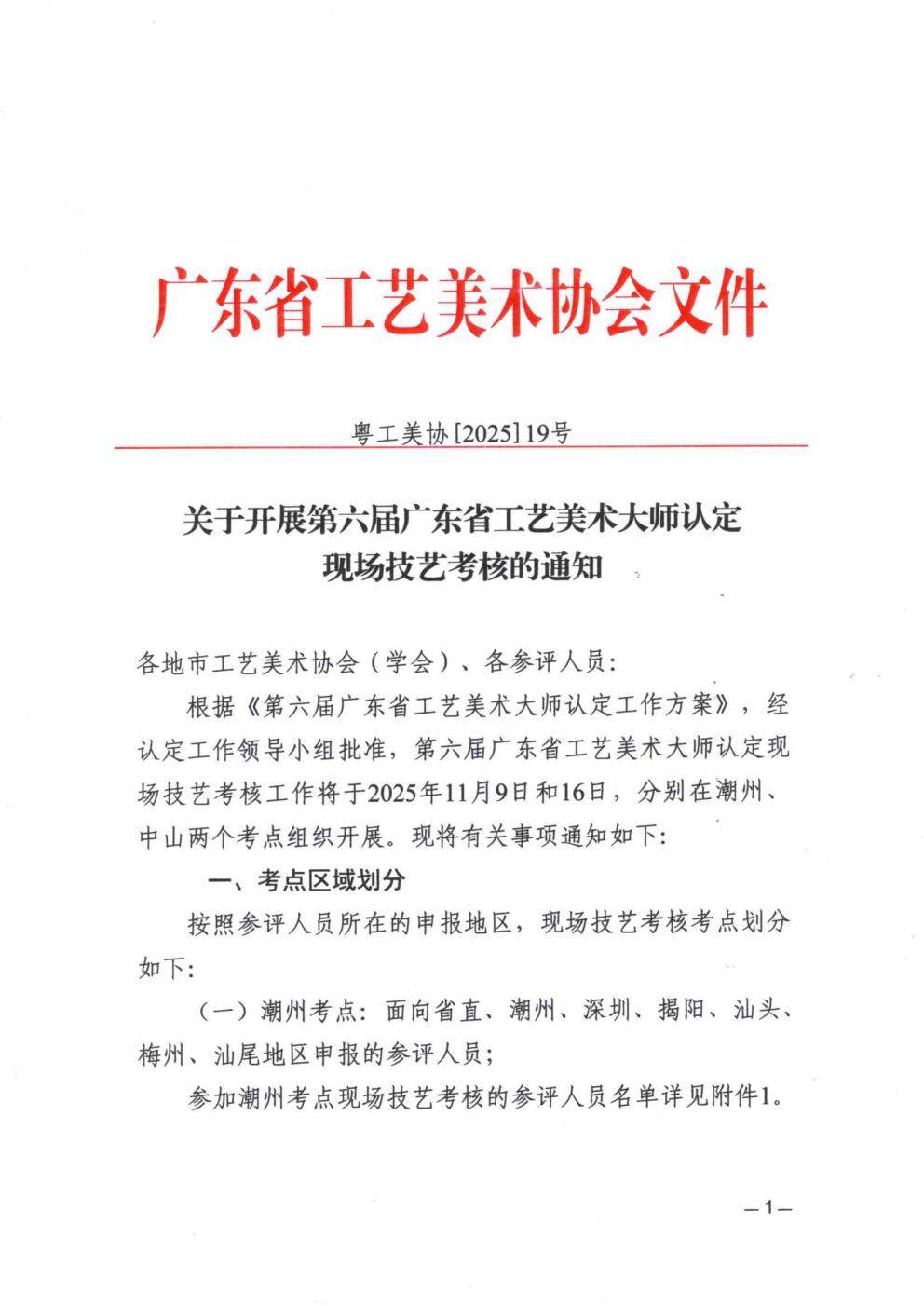 关于开展第六届广东省工艺美术大师认定现场技艺考核的通知