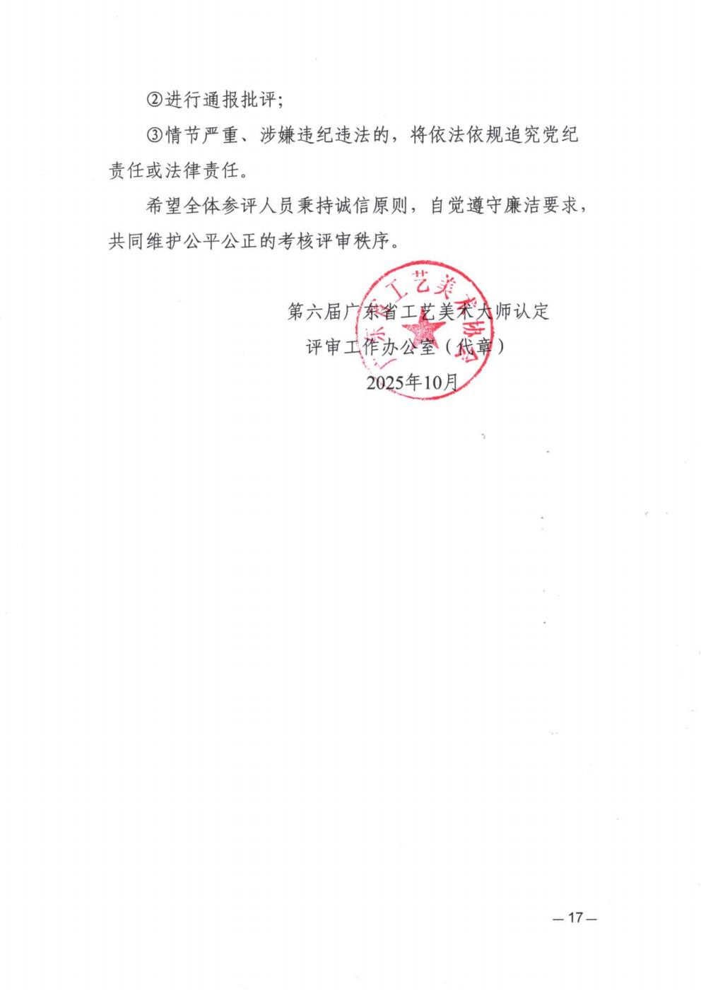 信息详情-关于开展第六届广东省工艺美术大师认定现场技艺考核的通知